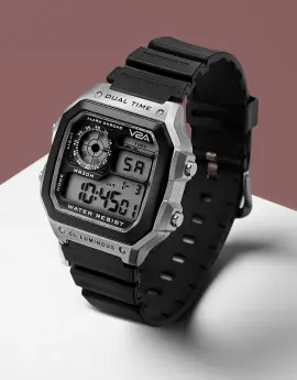 Men Dial & Bracelet Style Straps Digital Watch V2a-1299-black-silver-01