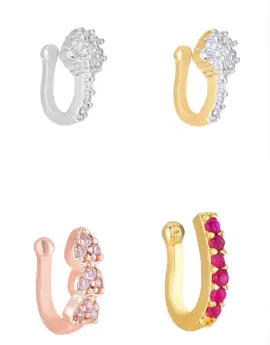 Set Of 4 Gold-plated & Silver-plated Ad-studded Nosepins