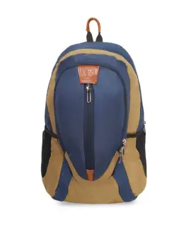 Unisex Navy Blue & Mustard Colourblocked Backpack